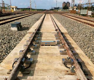 無(wú)梁式不斷軌自動(dòng)軌道衡是機(jī)械結(jié)構(gòu)、電氣系統(tǒng)及軟件控制于一體的成套計(jì)量控制系統(tǒng),它由預(yù)埋板、承載器、稱重傳感器、接線箱、稱重儀表、鐵路車號(hào)識(shí)別系統(tǒng)、工業(yè)控制計(jì)算機(jī)、計(jì)量管理軟件等幾部分組成。