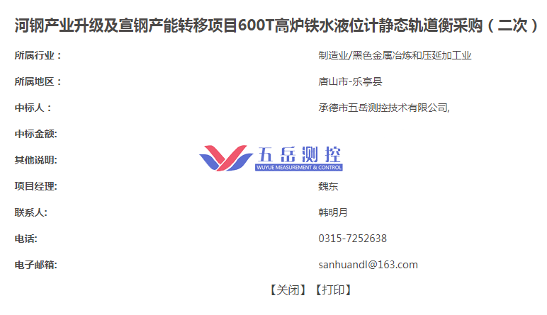 近日,承德市五岳測控技術(shù)有限公司中標(biāo)河鋼產(chǎn)業(yè)升級(jí)及宣鋼產(chǎn)能轉(zhuǎn)移項(xiàng)目600T高爐鐵水液位計(jì)靜態(tài)軌道衡采購項(xiàng)目。合同臺(tái)數(shù)24臺(tái); 項(xiàng)目合同的最終簽訂對(duì)整個(gè)公司以后業(yè)務(wù)推廣、拓寬市場具有重要的意義,不僅展示了公司的實(shí)力同時(shí)也展示了公司的核心競爭力。在此,我們對(duì)為該項(xiàng)目