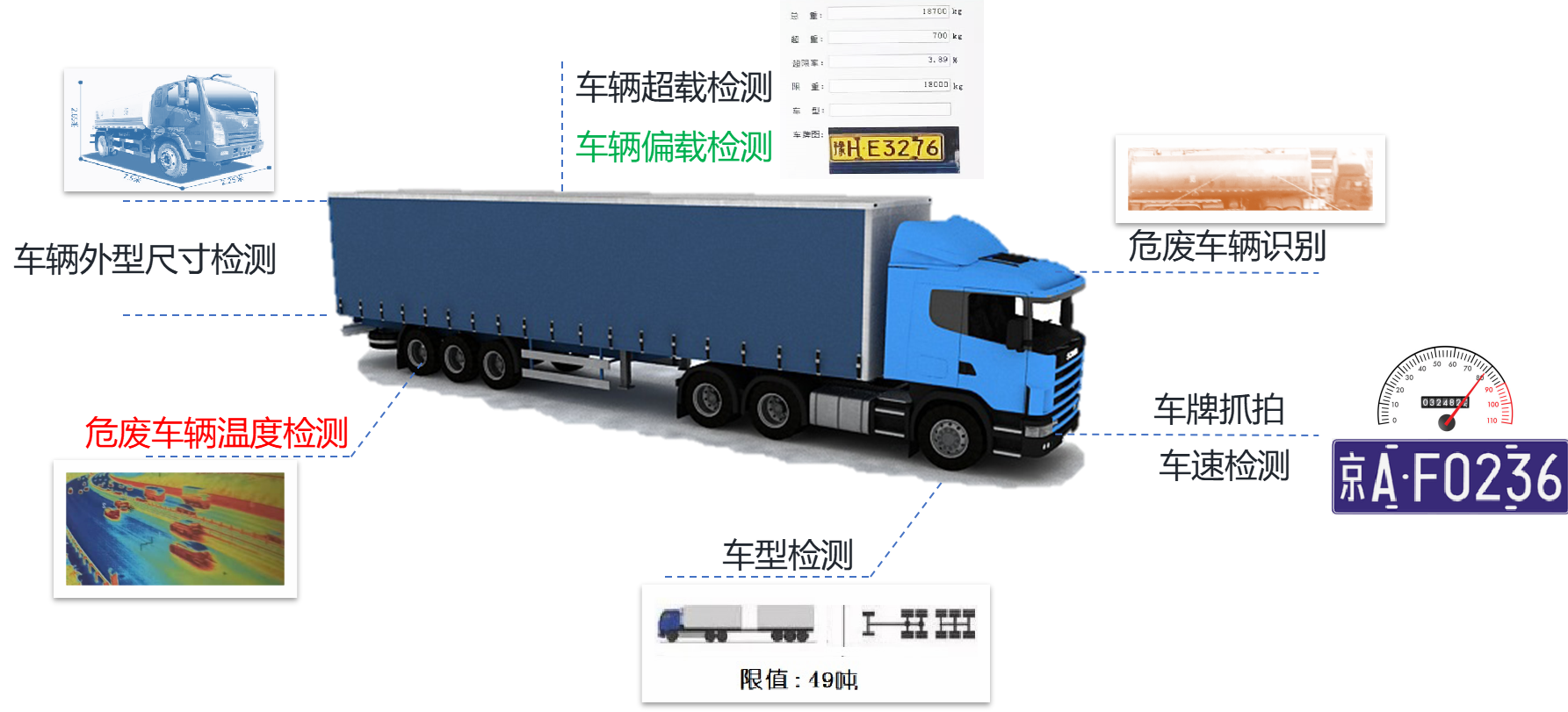 融合電子信息、計(jì)算機(jī)、圖像等技術(shù),對(duì)超載車輛、違法行為進(jìn)行監(jiān)管及處置